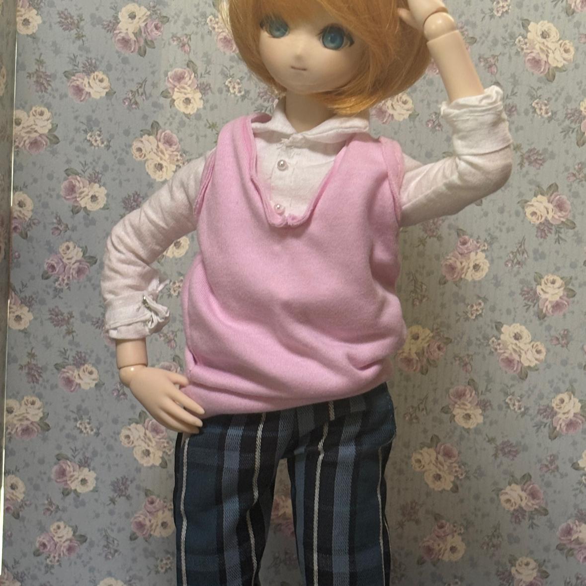 緋色に新作のピンクベストを着てもらいました!そろそろ羽織ものも作りたいな……