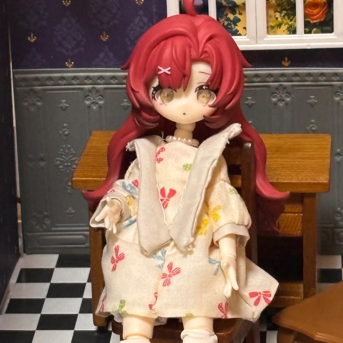 ソワレちゃんに新作のリボン柄ワンピースを着てもらいました!淡いカラーも似合ってるね!