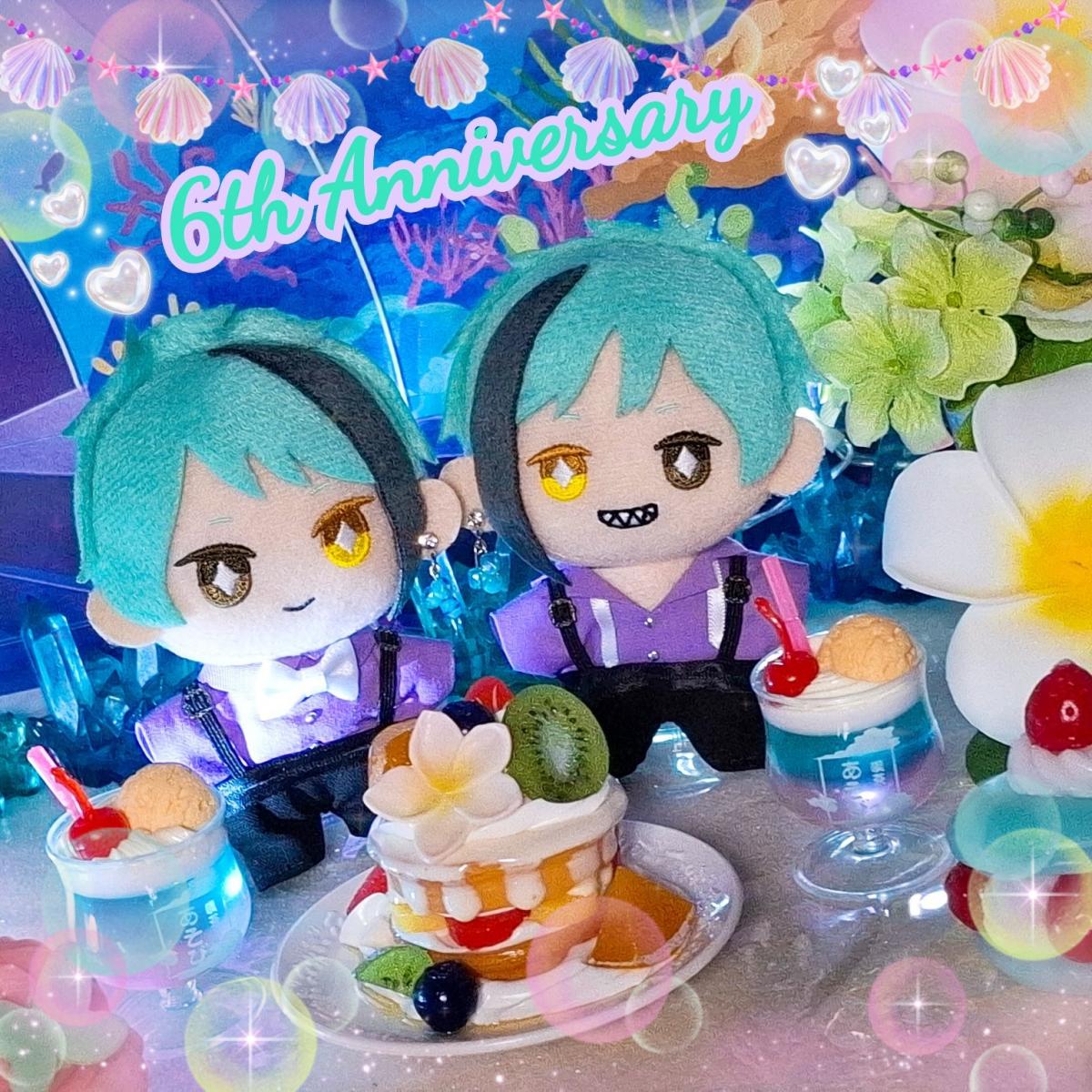 ツイステ6周年おめでとうございます🎁🦈🐬🎉 もう6年か…早いなぁ こんなに長く好きになったの初めてだな フロイドとジェイドに出会えて本当に幸せです🩷 これからもよろしくね🦐💕