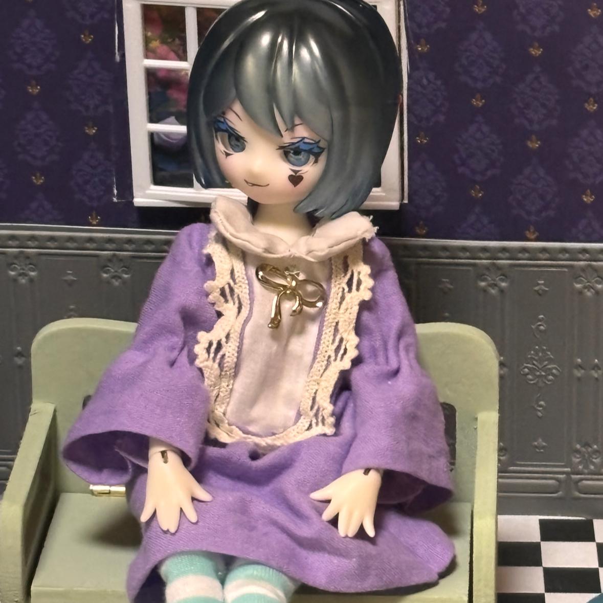 イリスちゃんに新作のパープルワンピースを着てもらいました!ちょっと大人っぽい雰囲気?
