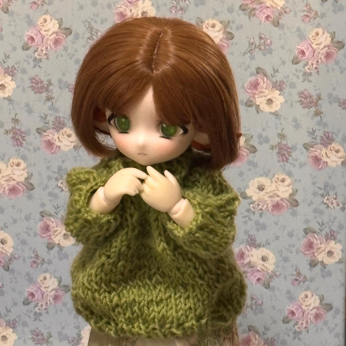 みたまちゃんに新作のセーターを着てもらいました! 毛糸を見た時に絶対似合う!と思ってたけどやっぱり似合ってるね!