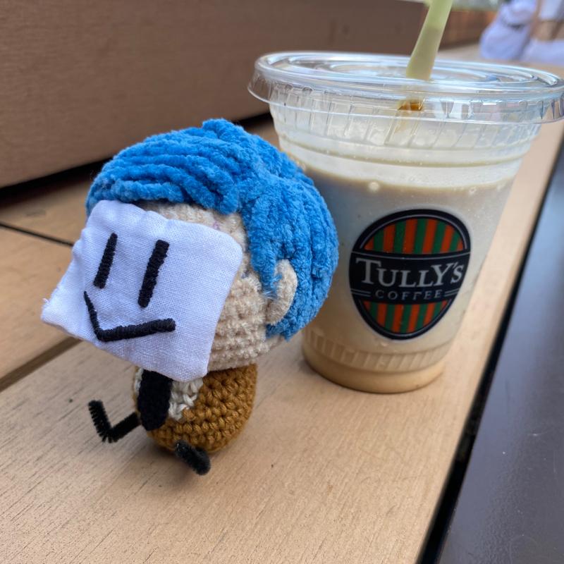 これはセブプラあみぬいの進捗👑 最近仕事の合間にあみぐるみを作ってるんだけど、髪の毛難しいね……