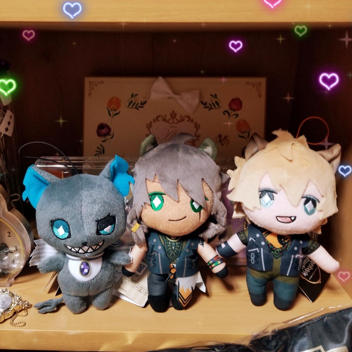 ツイステぬい。トレイさんもお迎え(´- `*) グリムとの大きさの差がまた可愛い🤣🤣💕