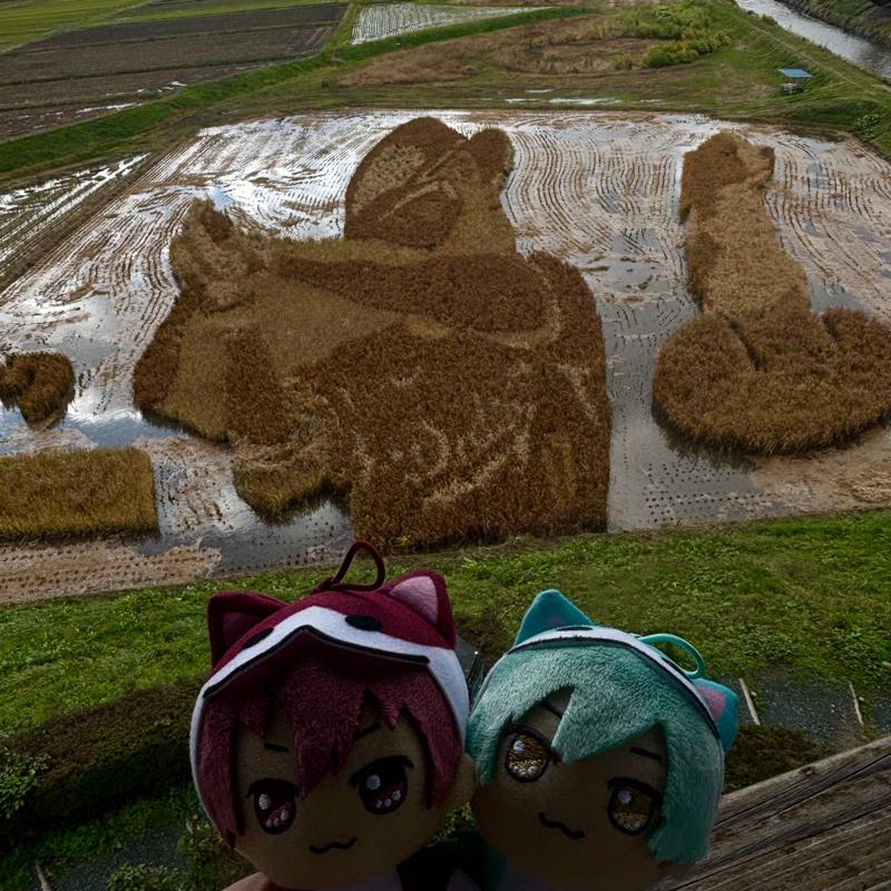 ライブ会場のある岩手県奥州市は大谷翔平選手の故郷という事で、愛犬デコピンとの田んぼアートがあると聞き行ってみました 途中虹が見れたので急いで写真撮ったのですが、写真だとうっすらですね…