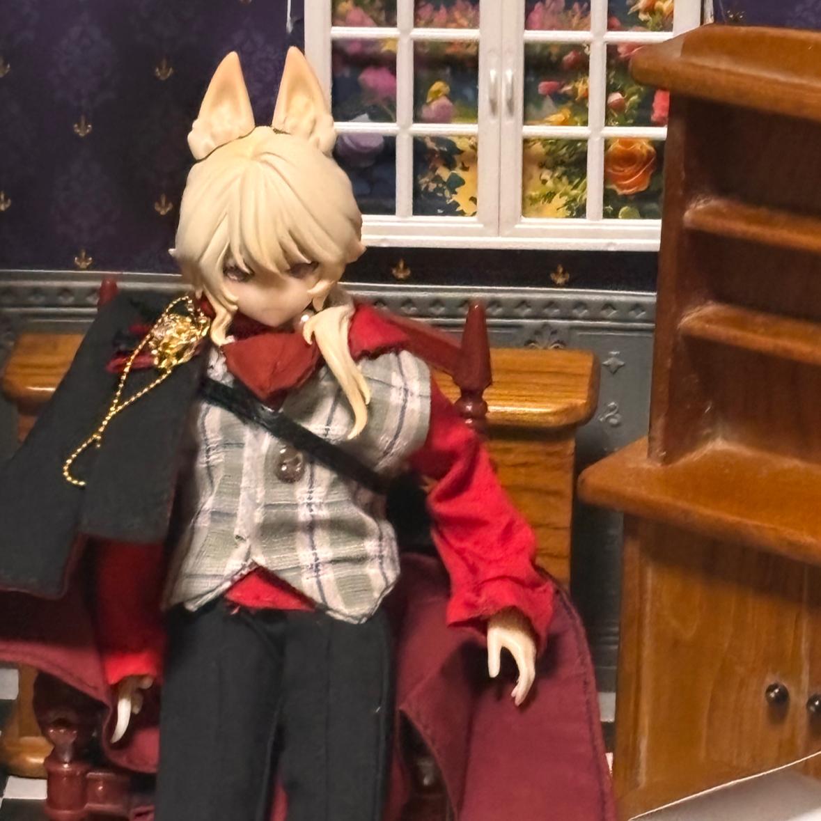 ニコラくんに新作のフードパーカーを着てもらいました!背景ボードはセリアで買ったものだけどいい感じ!