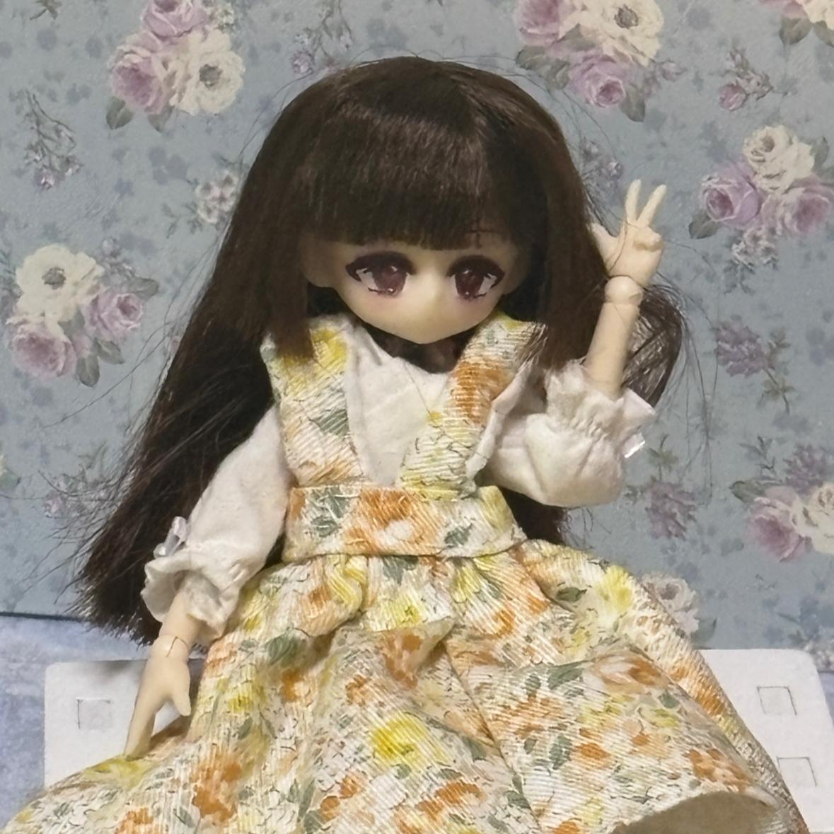 揚羽ちゃんに新作の花柄ジャンパースカートを着てもらいました!ちょっと大きめだけどかわいいね!