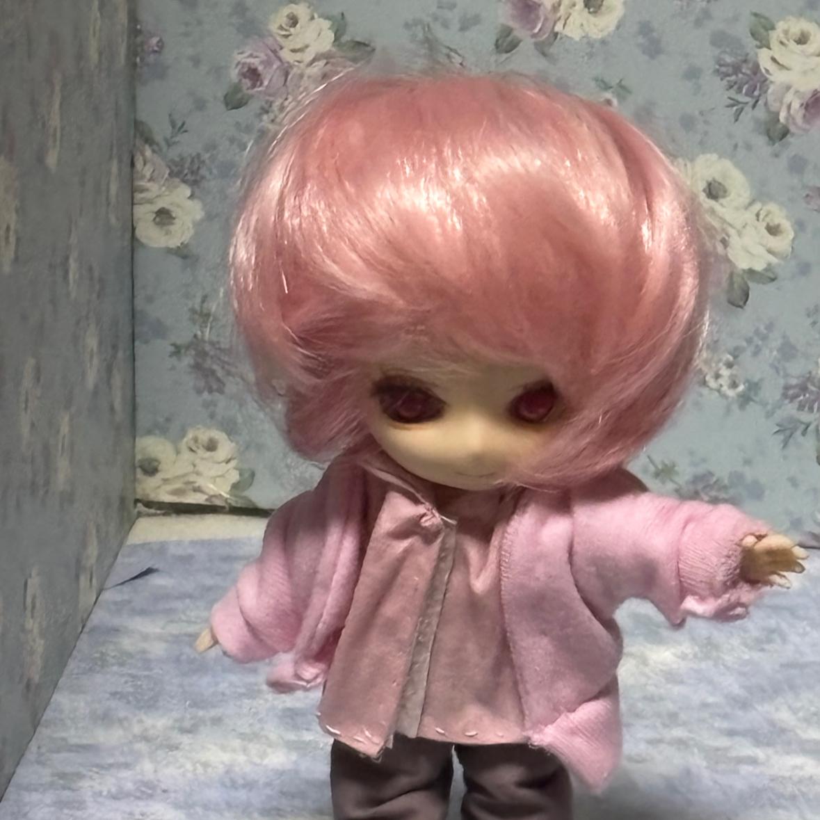 ヘレナちゃんに新作のピンク花柄ワンピースを着てもらいました!淡い色と髪色が似合ってるね!