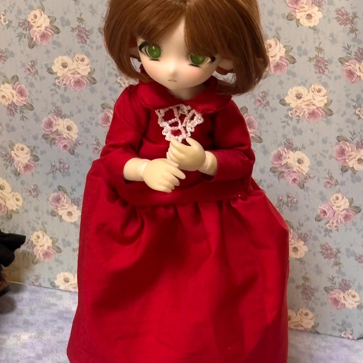 みたまちゃんに新作のレッドワンピースを着てもらいました!胸元のビーズレースは大変だったけど可愛く仕上がって良かった!